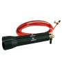 • Високу швидкість обертання, запобігання заплутування шнура, забезпечує матеріал скакалки: довговічний сталевий трос, а також вбудований підшипниковий механізм з кріпленням на кульовому шарнірі.