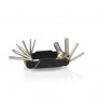 Мультитул має максимальну компактність і широкий функціонал. Корпус і інструменти зроблені з якісної сталі, стійкі до впливів зовнішнього середовища і довговічні. Набір включає в себе шестигранники різного міліметражу за допомогою яких можна обслужити всі основні вузли велосипеда, зіркоподібний ключ - для ремонту дискових гальм, два типи викруток і ключ Torx T25. Також велика перевага-легка вага виробу.