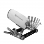 Високоякісний універсальний мультитул від світового виробника аксесуарів. Володіє низькою вагою 110 г завдяки використанню передових матеріалів, боковини виконані з карбону, а самі біти з високоміцної хром ванадієвої сталі обробленої на ЧПУ верстаті, для додання максимальної точності виготовлення. Інструмент включає всі необхідні біти для налаштування і обслуговування велосипеда, а також алюмінієву вичавку ланцюга з великою площею тіла для більш зручного хвата.