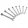 Combination Wrench Set – комплект якісних ключів для використання вдома або в майстерні. Виконані з хромованадієвої сталі, мають хромоване покриття. Набір включає в себе розміри від 8 до 15 мм.основною особливістю кожного інструменту є інтегрований 72-зубчастий храповий механізм, з кутом повернення в 5 градусів, що гарантує високоточну роботу.